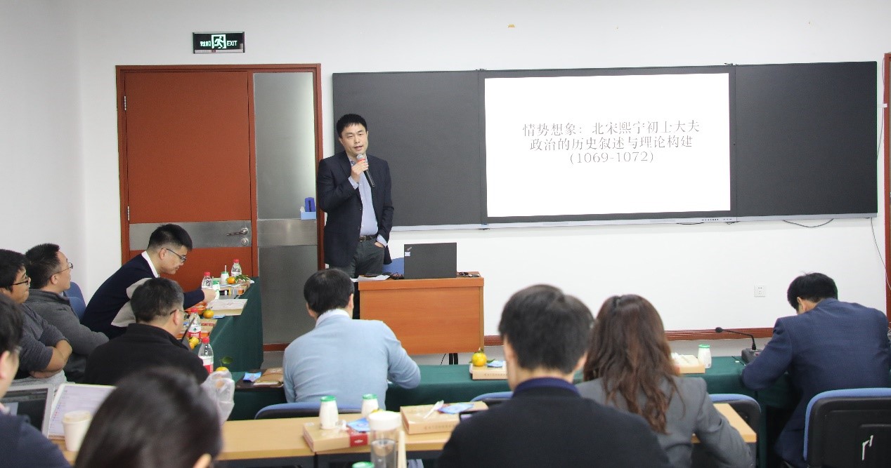 10月14日,政府管理学院在廖凯原楼514教室举办青年学者论文工作坊第四期活动。报告人罗祎楠围绕主题“情势想象:北宋熙宁初士大夫政治的历史叙述与理论构建(1069-1072)”做了报告。张长东、孙明两位老师担任评议人对报告进行了评议。俞可平、徐湘林、杨立华、宋磊、段德敏、张长东、孙明、刘颜俊、刘伦、淦宇杰、王镝、曾渝、费海汀、倪宇洁等老师以及20多位在读本科、硕士、博士研究生参加了此次活动。马啸主持本期工作坊。