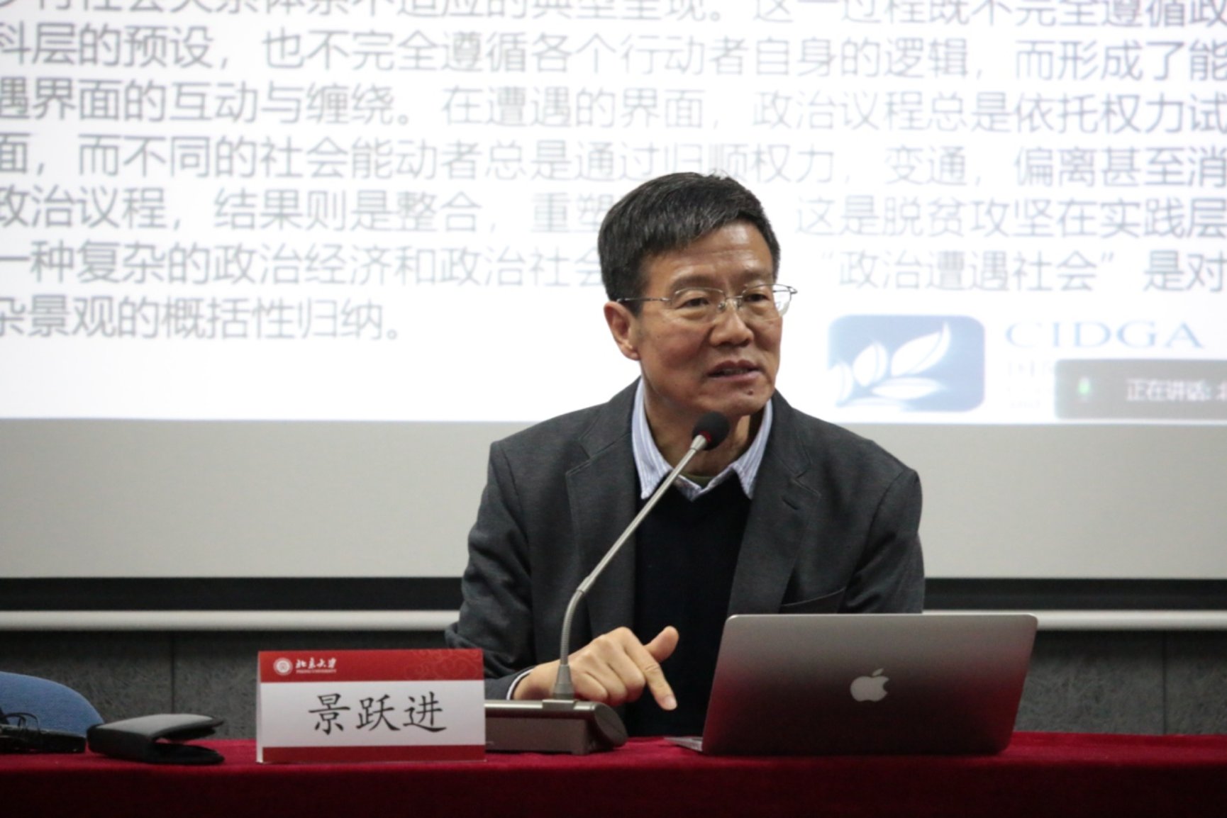 徐湘林教授首先介绍了李小云教授的学术背景和实践经历,指出这次讲座所包含的不仅仅是课本上的理论,还包括中国政策过程中的实践故事,并向其赠送了纪念礼品。随后,李小云教授发表了专题演讲。