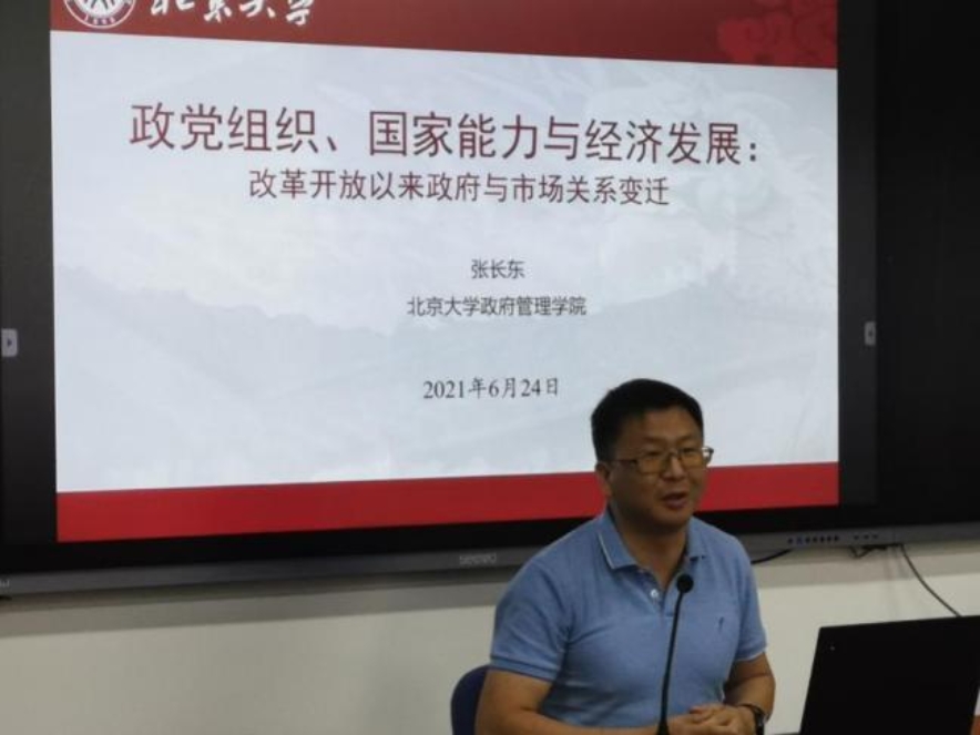 北京大学政府管理学院长聘副教授张长东以“政党组织、国家能力与经济发展:改革开放以来政府与市场关系变迁”为题作了专题发言。改革开放以来,中国实现了40年经济持续较快增长的“中国奇迹”,经济增长的背后伴随着结构性和制度性的变化。建国后中国实行的是计划经济体制,如何在共产党的领导下,通过不断的改革创造出社会主义市场经济体制,是解释中国经济增长的关键。从计划到市场转变、政府职能的转变,背后的推动力都来自于中国共产党。中国共产党的政党组织,提供了国家能力的制度基础,使得政府具有比较强的协调能力与长远的问责能力,能够约束各级领导干部,保证制定好的政策得到有效的贯彻执行,进而激励、塑造着经济行为者的反应,并提供了良好的公共产品,促进了经济的长期增长。