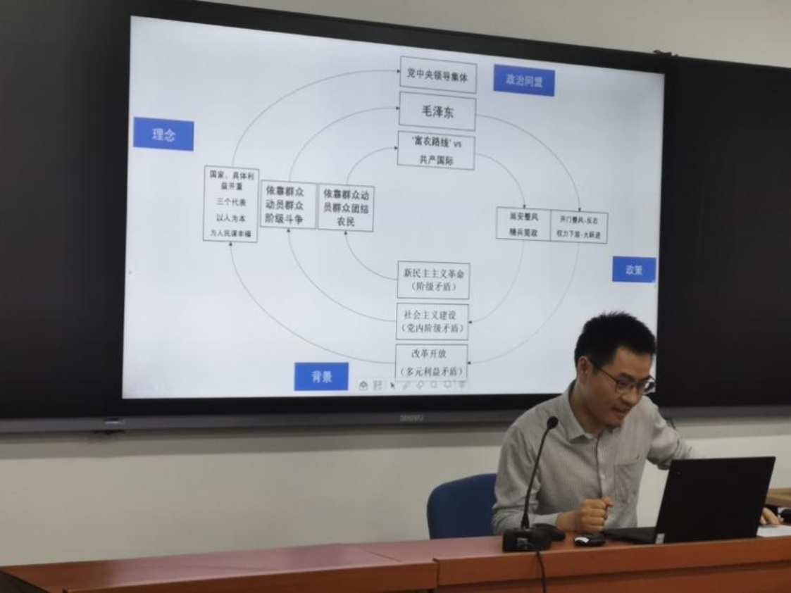 北京大学政府管理学院助理教授曾渝作了题为“中国共产党群众路线的百年演变:政治螺旋视角的分析”的专题发言。中国共产党群众路线的政治理念深刻地影响了中国国家治理现代化的发展。中国共产党立足于马克思主义哲学的认识论和方法论,运用辩证唯物主义和矛盾分析法,分析到中国社会在不同时期的主要矛盾。在不同的历史时期,中国共产党始终坚持着一切为了群众、一切依靠群众的群众路线的政治理念。在不同的历史环境中,中国共产党关于群众路线的政治理念会影响政府对群众利益的回应,进而产生不同的结果。