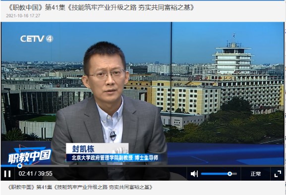 今年的全国职业教育大会上提出,要建设技能型社会。当下,“技能”已经成为一个“热频词”。10月16日,《职教中国》播出第41集《技能筑牢产业升级之路 夯实共同富裕之基》,邀请了我院长聘副教授、博士生导师封凯栋老师和南开大学周恩来政府管理学院教授、博士生导师王星老师作为嘉宾,一同探讨如何让拥有技能、掌握技能的人生活更美好,如何通过技能的提升实现产业升级,支撑经济发展,服务共同富裕,让整个社会的生活更加美好。
