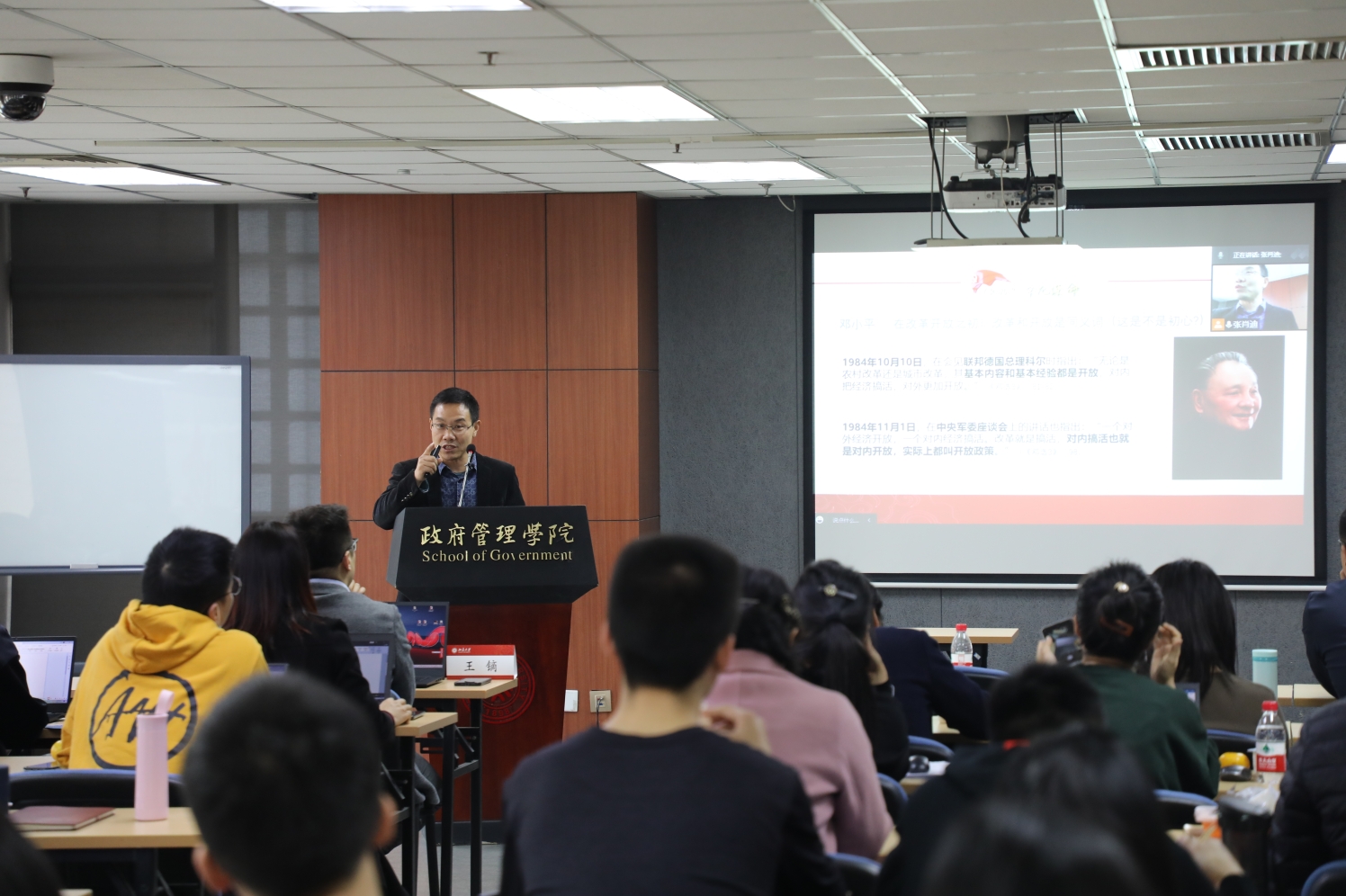 为庆祝政府管理学院成立二十周年,11月3日中午,我院在廖凯原楼207教室举办了政管论坛“开放治理:中国改革开放40年的宝贵经验”的讲座,本次讲座邀请了公共政策系主任杨立华教授主讲,王镝助理教授主持,吸引了线上线下超过200名师生参加。