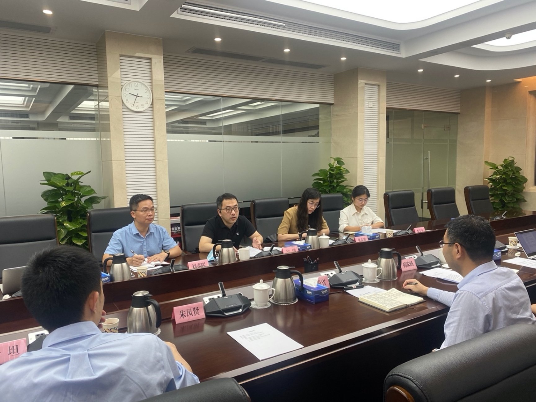 7月8日上午,调研组一行来到广东省政务服务数据管理局,就如何破解数字政府协同困境这一课题展开交流座谈。广东省政务服务数据管理局副局长高尚省、规划财务处处长朱凤贤、数据要素工作专班组长韩朱旸、广东数字政府研究院院长余坦、广东省发展研究中心创新产业研究处处长张冬霞、广东省政府发展研究中心刘春晖等列席座谈会。