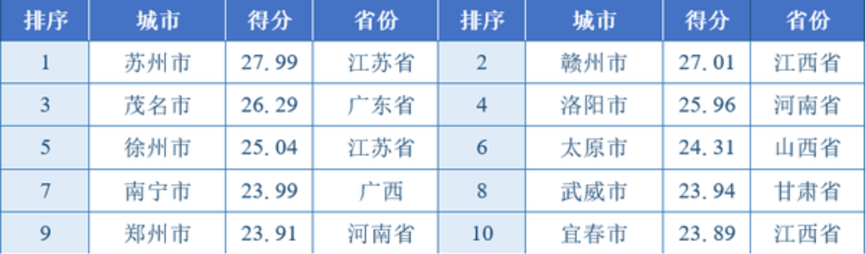 地市级城市综合得分排名