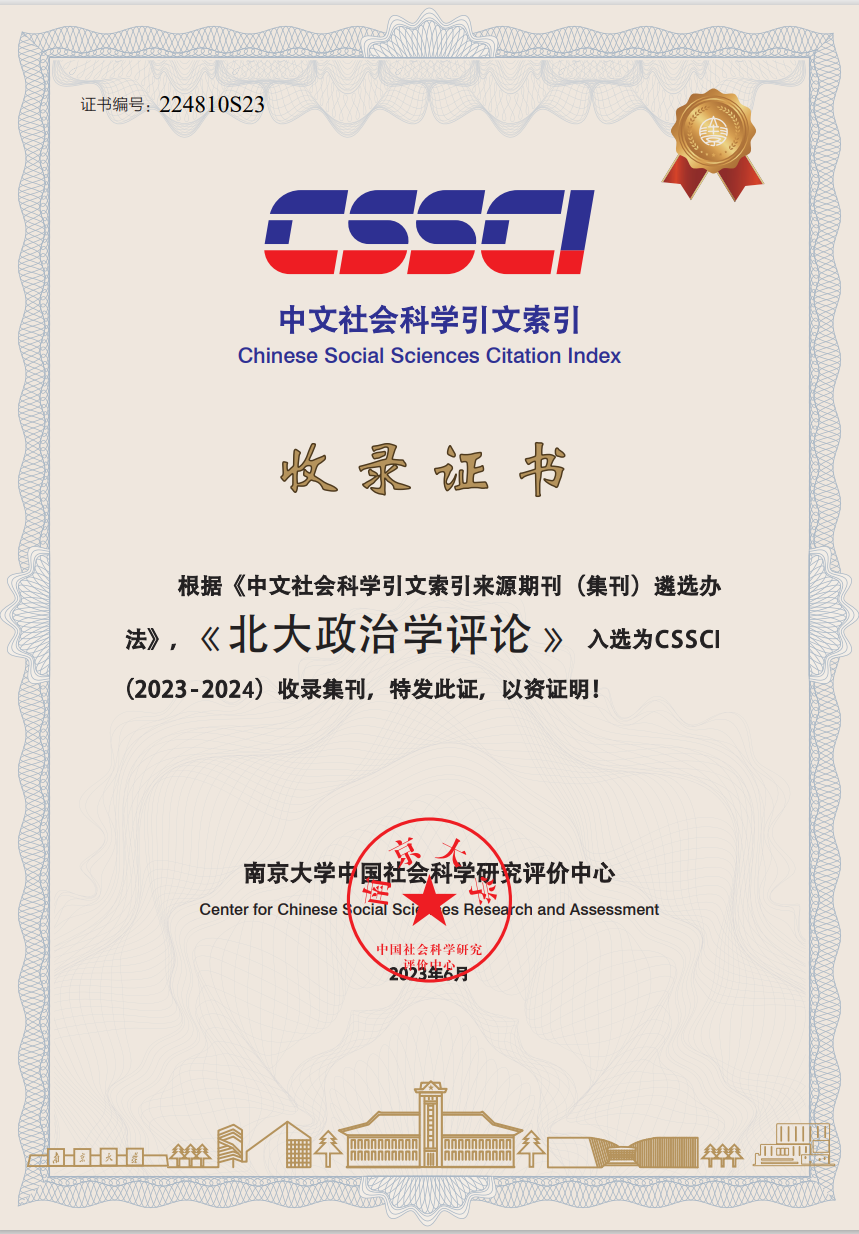 《北大政治学评论》入选CSSCI(2023-2024)收录集刊