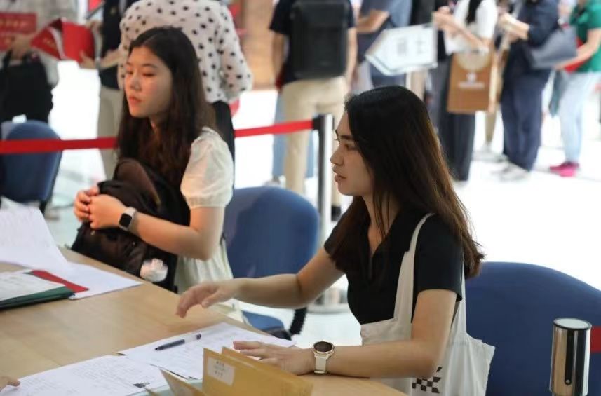 随后,2023级研究生新生陆续抵达,在志愿者的引导下顺利完成了入学手续的办理,并来到学院定制的背景墙前合影留念。新程将启,SG“新星”的笑容点亮了整个阳光大厅。