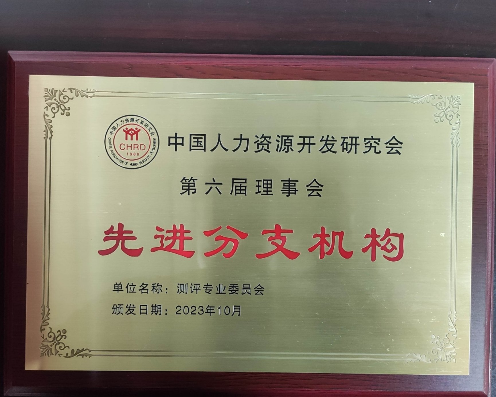 中国人才测评专业委员会被评选为中国人力资源开发研究会第六届先进单位