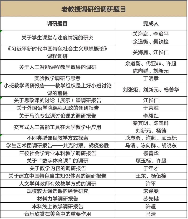 从教学一线到教学研究,他们所希望的,是成为推动师生之间自由交流的那双手,在老师和学生之间架起一座沟通无碍的桥。“确保每位学生都能享受到高质量的本科教育”,让学生们真心地参与到课堂之中,这也是自1996年成立近30年以来,老教授调研组始终坚守的初心。
