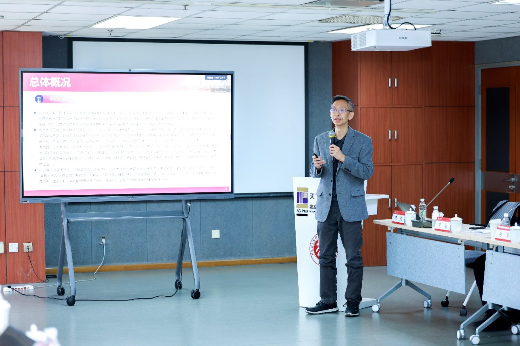 田凯代表公共管理专业学位授权点作汇报。田凯介绍,学院针对公共管理专业学位人才的培养,建立了综合培养体系,打造立体化、多维度的教育模式。公共管理专业学位教师队伍规模宏大,学科背景多元化,同时注重引入实务经验丰富的行业导师,以促进学生提升实践能力。此外,北京大学成立了专门委员会负责公共管理专业学位的管理工作。公共管理专业学位人才培养成果亮眼,毕业生职业发展出色,在各行各业中担任重要职务,为地方经济社会发展作出积极贡献。