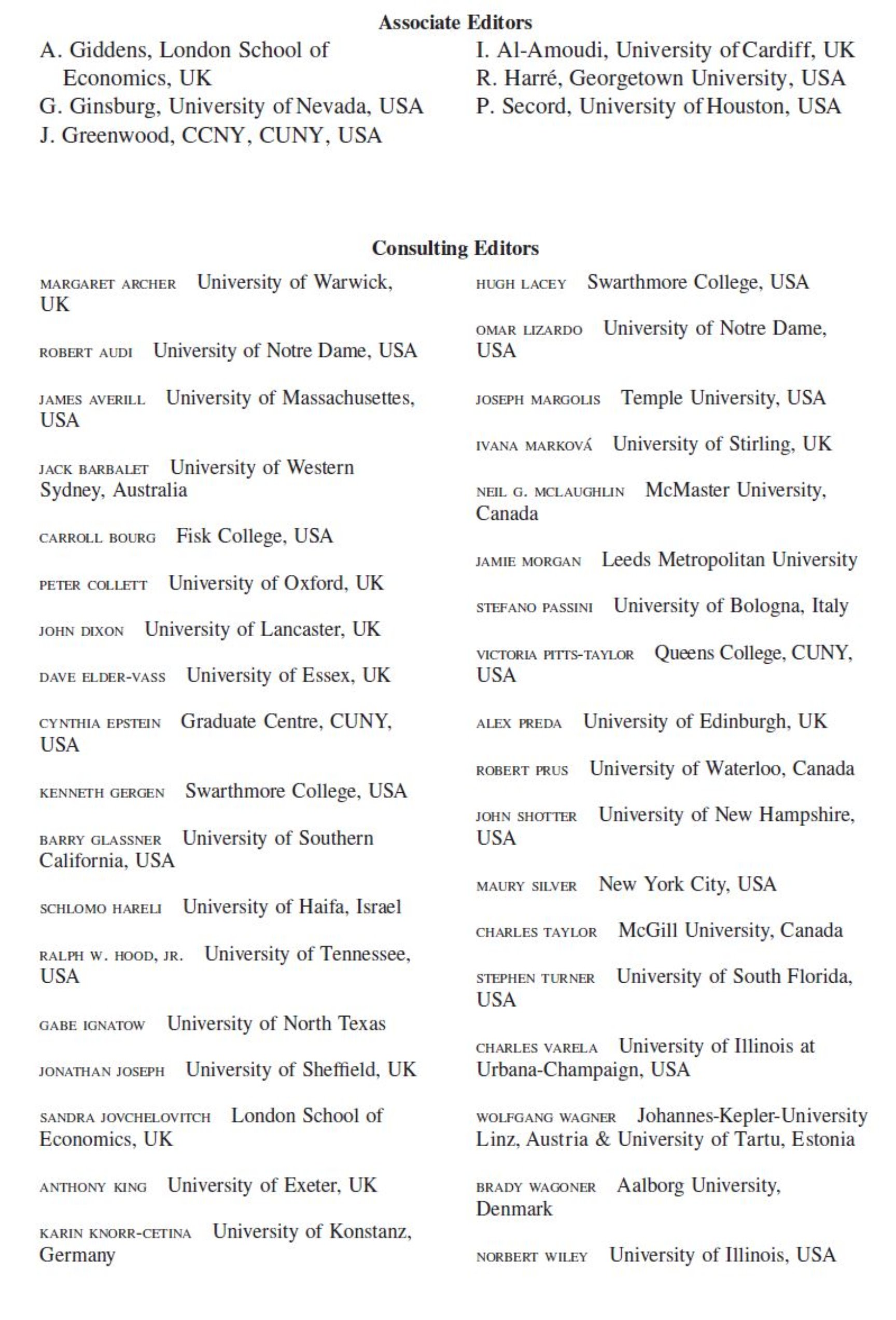 本期刊虽被列为社会学类别下社会心理学分支的期刊,但它其实也是社会学理论研究的三大期刊之一,另外两份分别为Sociological Theory以及Theory and Society。期刊关注的理论维度也较另两份更为微观,讨论个体行为与结构的互动,且期刊的评审委员会也不乏大师级专家和知名社会理论学者,例如副主编吉登斯以及因为和他辩论而在社会学领域引入批判实在论的阿彻,美国社会学评论的主编、社会理论学者Omar Lizardo,还有最近十几年在批判实在论哲学本体论基础上发展涌现(Emergence)理论的新锐Dave Elder-Vass等等。所以在主编通知我们文章最终被接受时,特别提到我们应该extra proud,因为诸位审稿人都是业内和这个领域的senior figures。