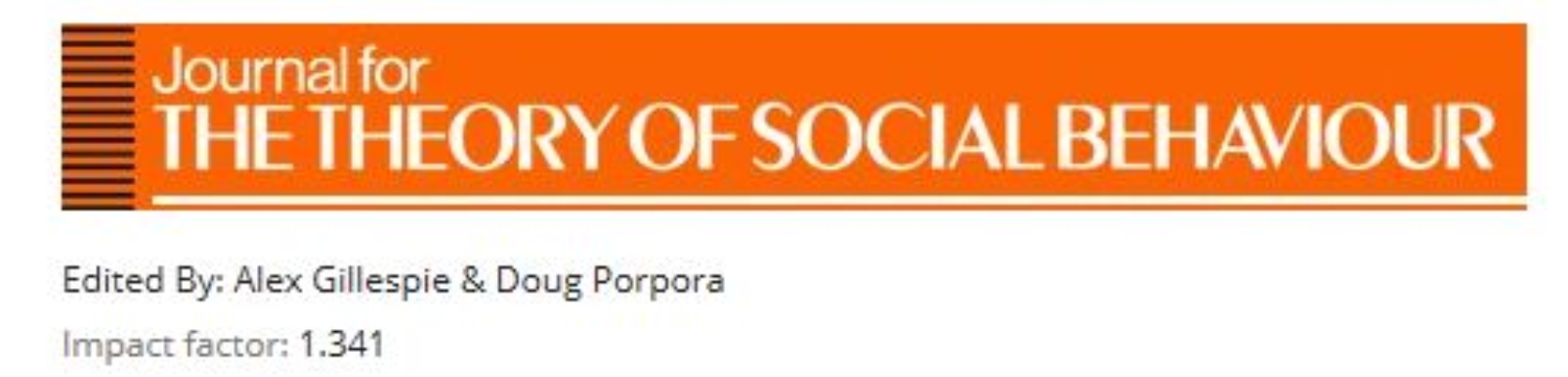 Journal for the Theory of Social Behaviour advances understandings of social behaviour, that is, people acting in relation to, or being constituted through, the social world of other people, institutions, and material and symbolic culture.
