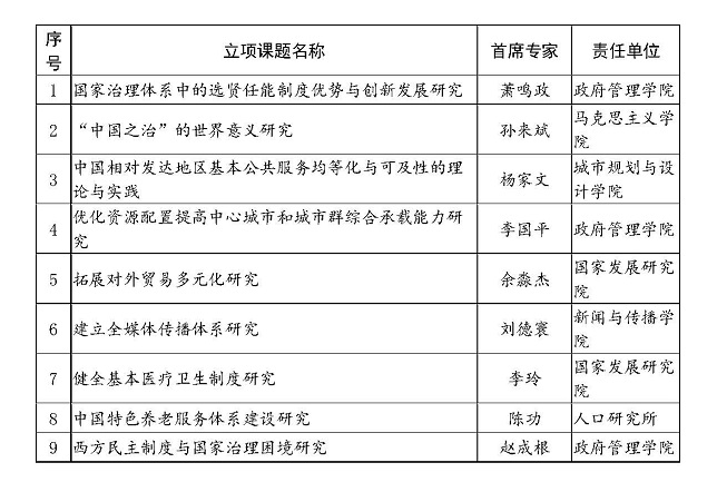 表1 研究阐释党的十九届四中全会精神国家社科基金重大项目北京大学立项名单