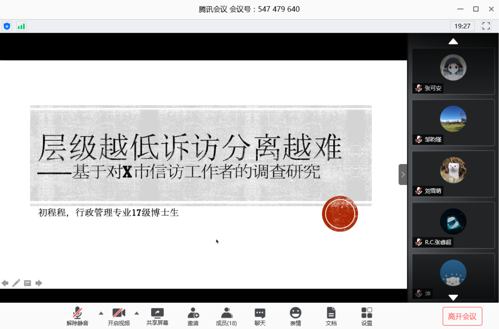 2020年5月22日,政府管理学院第五期公共管理学科博士生学术沙龙以腾讯会议形式召开,本次沙龙的主讲人为行政管理专业博士研究生初程程、区域经济学专业博士研究生王聪。政府管理学院助理教授杨一老师出席了本次活动,我院20余名研究生参与了讨论和交流。