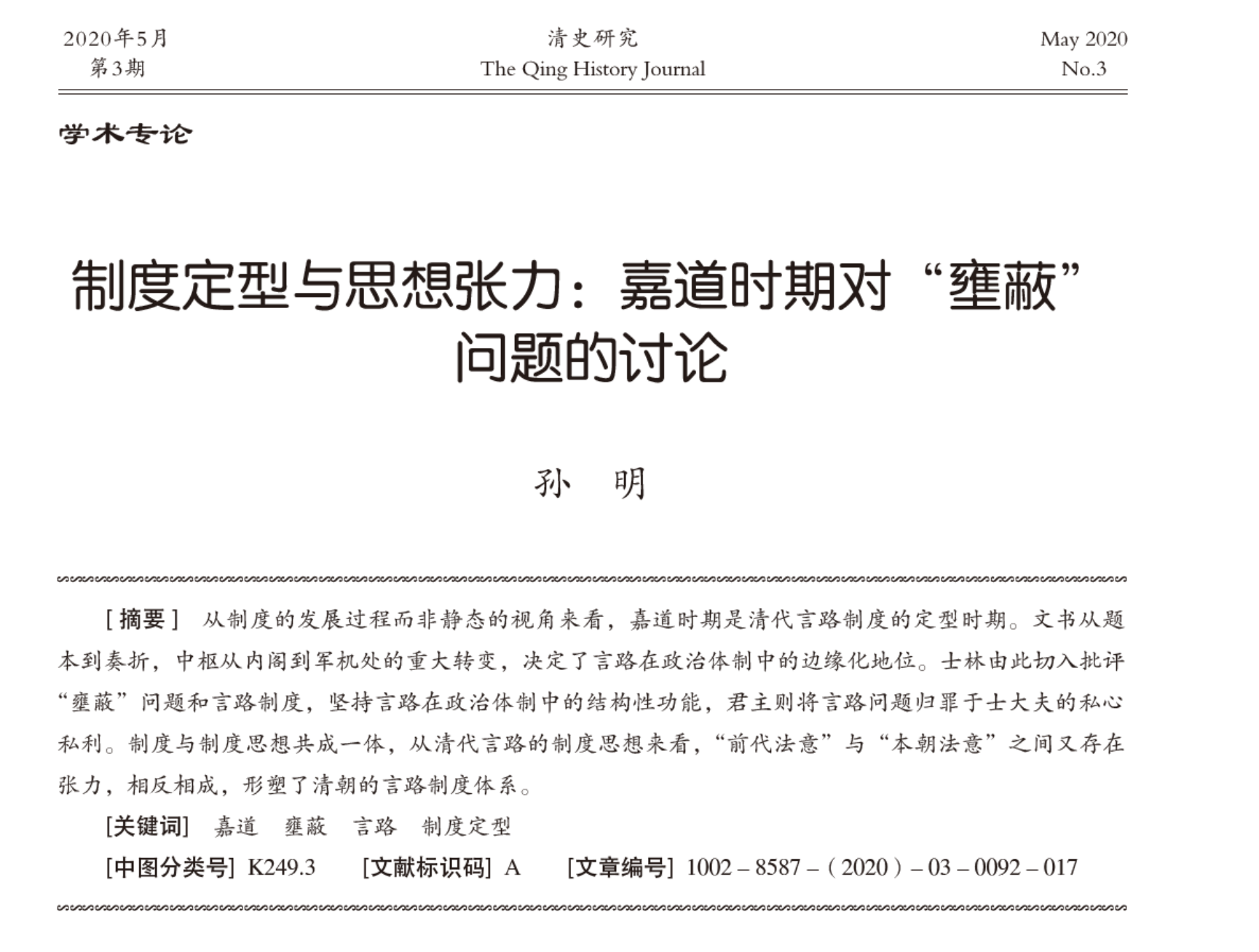 制度定型与思想张力:嘉道时期对“壅蔽”问题的讨论