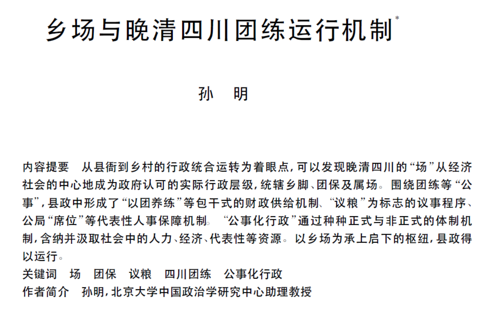 乡场与晚清四川团练运行机制