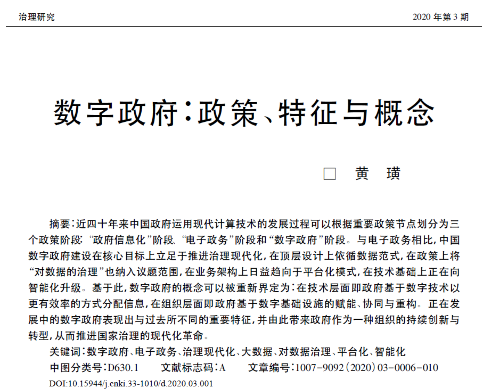 黄璜:数字政府:政策、特征与概念(全文)