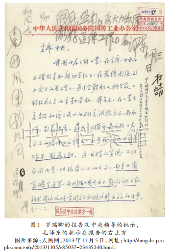1962年,中印边界和台湾方向迅速加剧的安全威胁最终促使中央决策层下定决心研制原子弹。当年6月,毛泽东在听取东南沿海形势的汇报时明确表态,“对尖端武器的研究试制工作,仍应抓紧进行,不能放松或下马”。但是,对全国各个经济部门进行集中动员的工作已经明显超过了国防工办的权限范围。同年10月19日,刘少奇主持中共中央政治局会议听取汇报,指出“导弹和原子弹都需要中央有个专门的机构来抓,做组织工作、协作工作,下命令的工作。这两弹要搞个小的机构,不这样抓,这里一拖,那里一拖,时间过去了”。于是,建立中央领导的全国性机构来主抓“两弹”被提上中央决策层的政治议程。10月30日,罗瑞卿向中共中央和毛泽东上报《关于建议成立中央专门委员会的报告》,建议“在中央直接领导下,成立一个专门委员会,加强对原子能工业的领导,随时检查、督促计划执行情况,并在必需的人力、物力上进行具体调度,及时解决在研究、设计和生产建设中所遇到的问题”。11月3日,毛泽东在报告上批示:“很好,照办。要大力协同做好这件工作。”一锤定音。