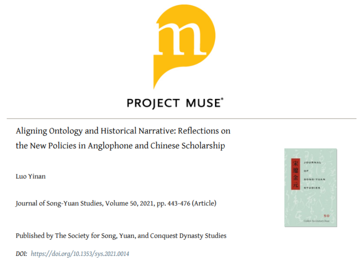 罗祎楠助理教授在《Journal of Song-Yuan Studies》发表题为“Aligning Ontology and Historical Narrative: Reflections on the New Policies in Anglophone and Chinese Scholarship”(历史社会科学如何讲历史故事?北宋熙丰新法的历史叙事为例)的论文