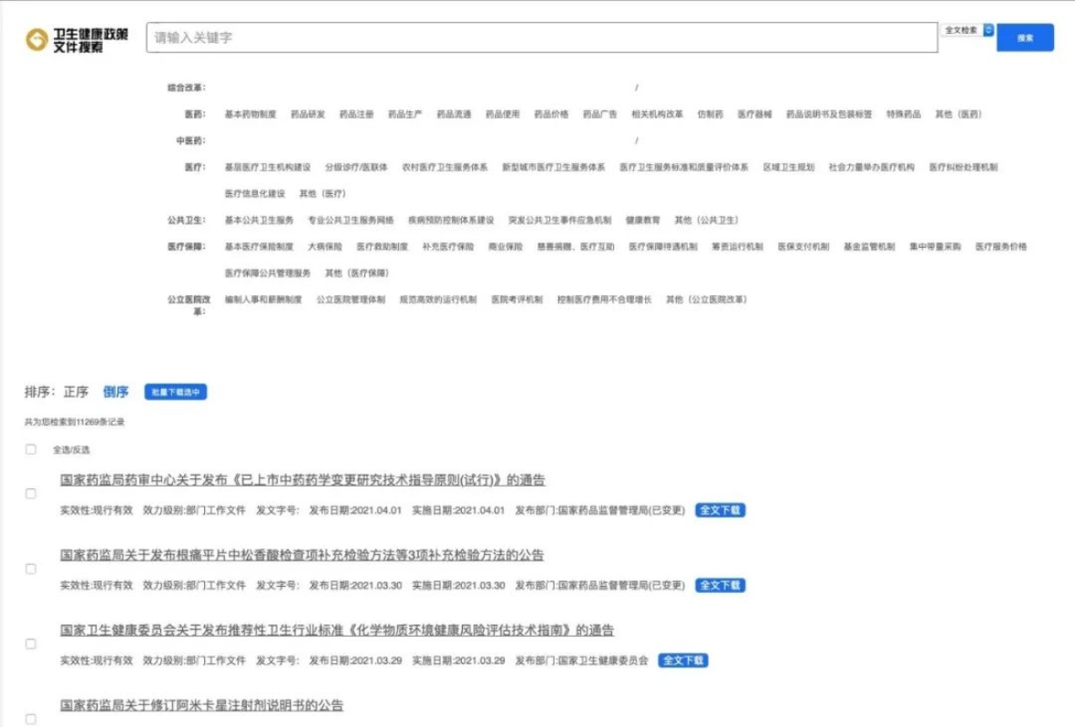由黄璜团队开发,涵盖从1952年至2021年期间的医药卫生领域政策共计11688条。