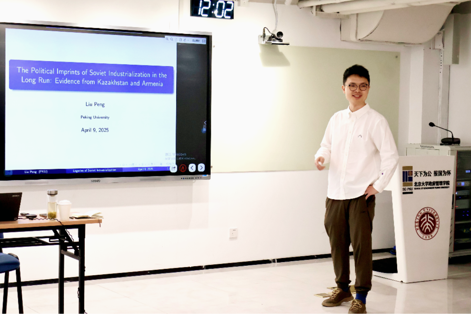 4月10日,政府管理学院举办第十六期青年学者论文工作坊。本期工作坊由彭柳老师主讲,题目为“苏联工业化的政治印记:来自亚美尼亚和哈萨克斯坦的证据”,由张长东老师主持,张健、孙明、刘颜俊三位老师担任评议人,院长燕继荣、学院教师封凯栋、马啸、费海汀、曾渝、王越端、庞亮、刘宇辰、罗薇、孙宏哲、顾超以及二十余位在读学生参加活动。