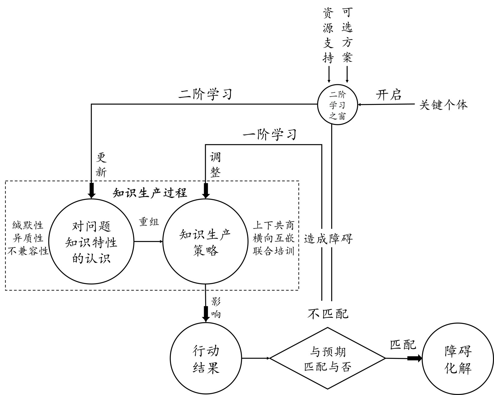 为此,本文将某直辖市X区的政务信息化项目作为个案研究分析对象,通过归纳式案例研究,探究其面临的知识生产困境和采取的应对策略,形成了“多阶学习”的分析框架。研究发现,数字政府建设过程中,各主体会通过反复探索和比对以寻找最适合的知识生产策略,不断推动数字化转型深化。具体而言:第一,在面对上级模糊构想难以落地时,政府采用“上下共商”策略使上级概念构想,从单向传达走向了共同诠释,解码了知识缄默性;第二,面对政企观念相互冲突,政府采用“横向互嵌”策略改变政企关系,从浅层互联走向了深度耦合,调和了知识异质性;第三,面对员工工作惯习难以改变,政府采用“联合培训”策略使员工从被动接受走向了双向互动,优化了知识不兼容性。通过案例剖析,文章形成新的理论框架,该框架指出,在面对知识生产的重重障碍时,政府既可以通过一阶学习完善现有行动策略,在遭遇阻滞时也可以通过二阶学习反思问题根本原因,重塑组织间关系。在克服知识生产障碍的过程中,政府组织的一阶学习与二阶学习之间会经历反复循环。此外,从一阶学习到二阶学习的切换并不是自然而然发生的,而是存在关键条件:包括有赖于资源支持和备选替代方案,以及需由关键个体推动“学习之窗”开启。