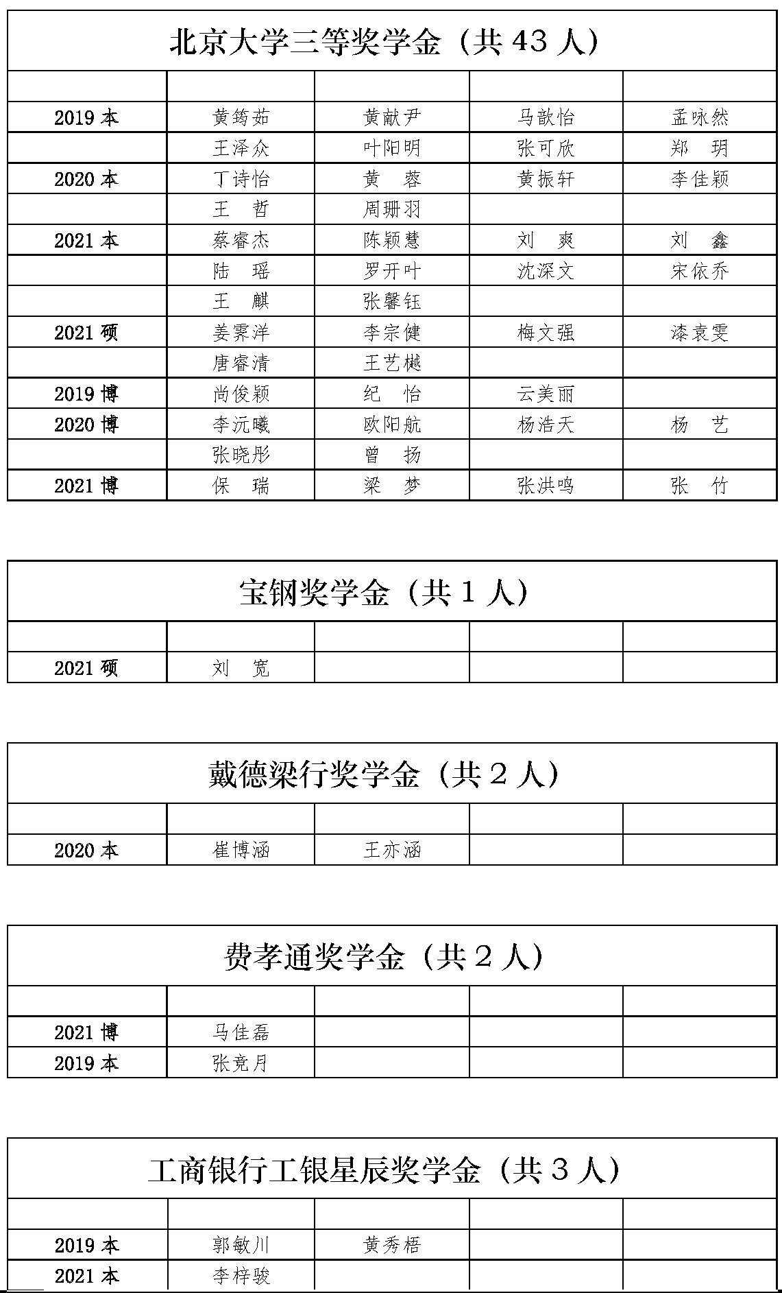 北京大学政府管理学院2021-2022学年奖学金评选结果公示