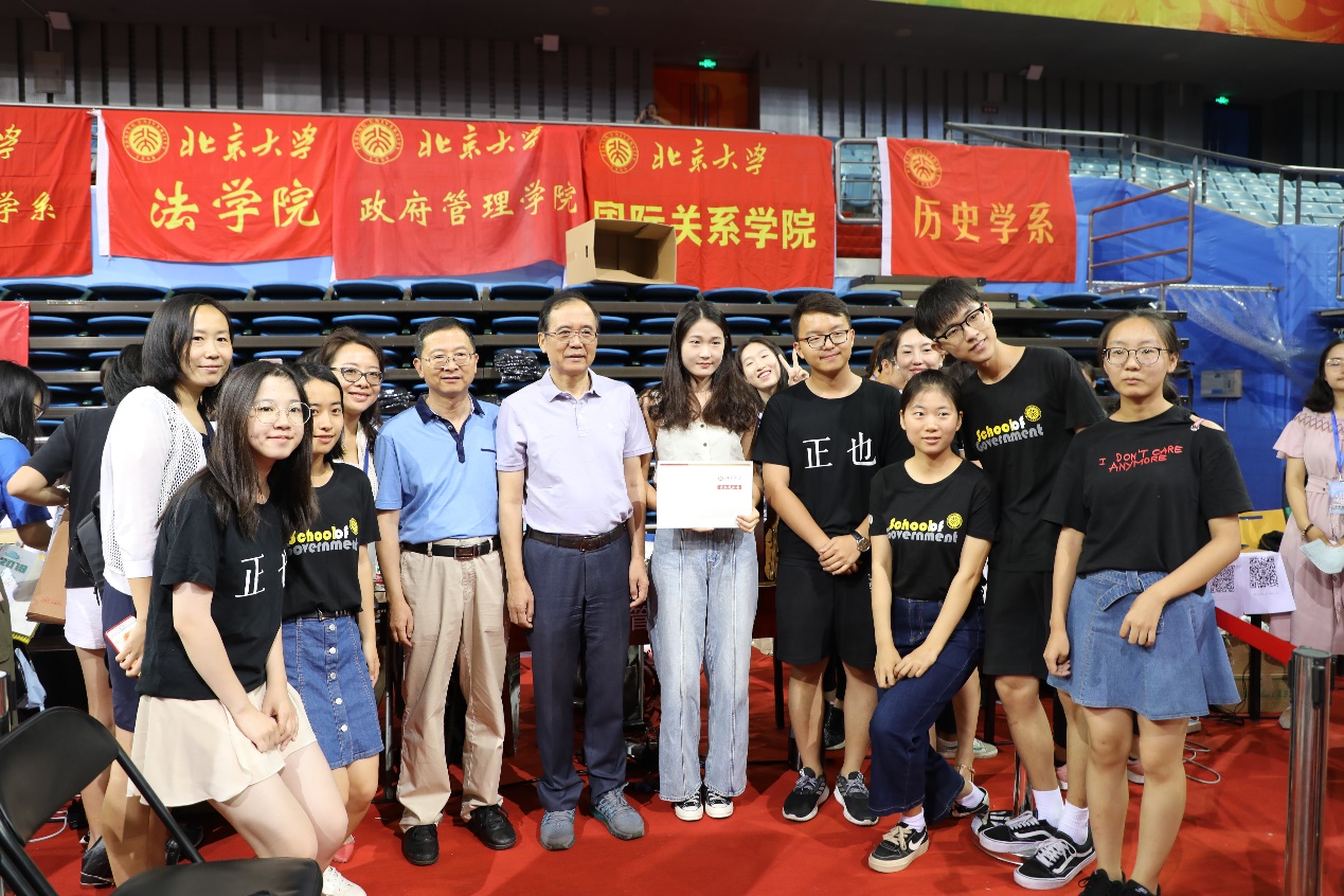 报到期间,北京大学党委书记郝平、北京大学校长林建华来到迎新点,了解学院迎新情况,与学院老师、新生和志愿者亲切交流。