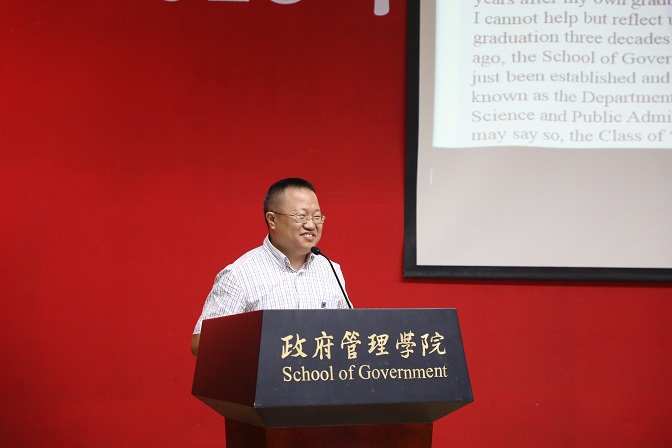 下午好!很高兴回到燕园,来到未名湖畔,来参加政府管理学院举办的毕业典礼,并作为毕业三十年的84级同学代表发言。回溯三十载,我也毕业于斯。那时,政府管理学院是政治学与行政管理系,三十年前刚刚成立。所以,我可以说是我们政府管理学院的首届毕业生,我为此深感骄傲和自豪。