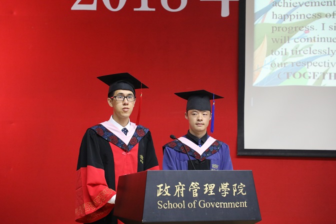 作为毕业生,我们既要看到中国已经取得的巨大的成就,也要看到当前存在的不足,人民的美好生活已经开始但还在路上。我衷心地希望政管大家庭的各位亲人能继续保持这种对国家和民族命运的深刻关切,并在学习和工作中通过不同的方式,一起为国家和人民的美好未来而努力。