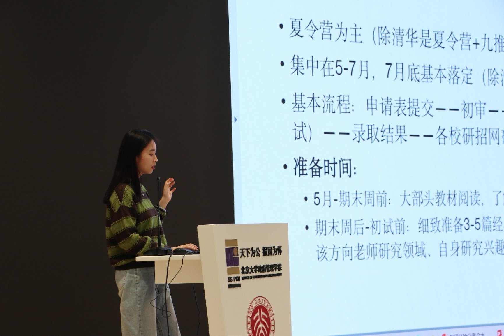 为了帮助同学们了解、准备推荐免试硕士/博士研究生的相关事宜,北京大学政府管理学院学生会学术发展部联合20级本科班,于3月11日举办了2023保研分享会。本次活动共邀请了十二位成功保研的学长学姐分享自己的经验,他们就相关专业保研的指标与要求、相关材料的准备、面试流程以及准备技巧等做了详尽的介绍,分享各自对于保研经历的思考,给予学弟学妹们真挚的建议。