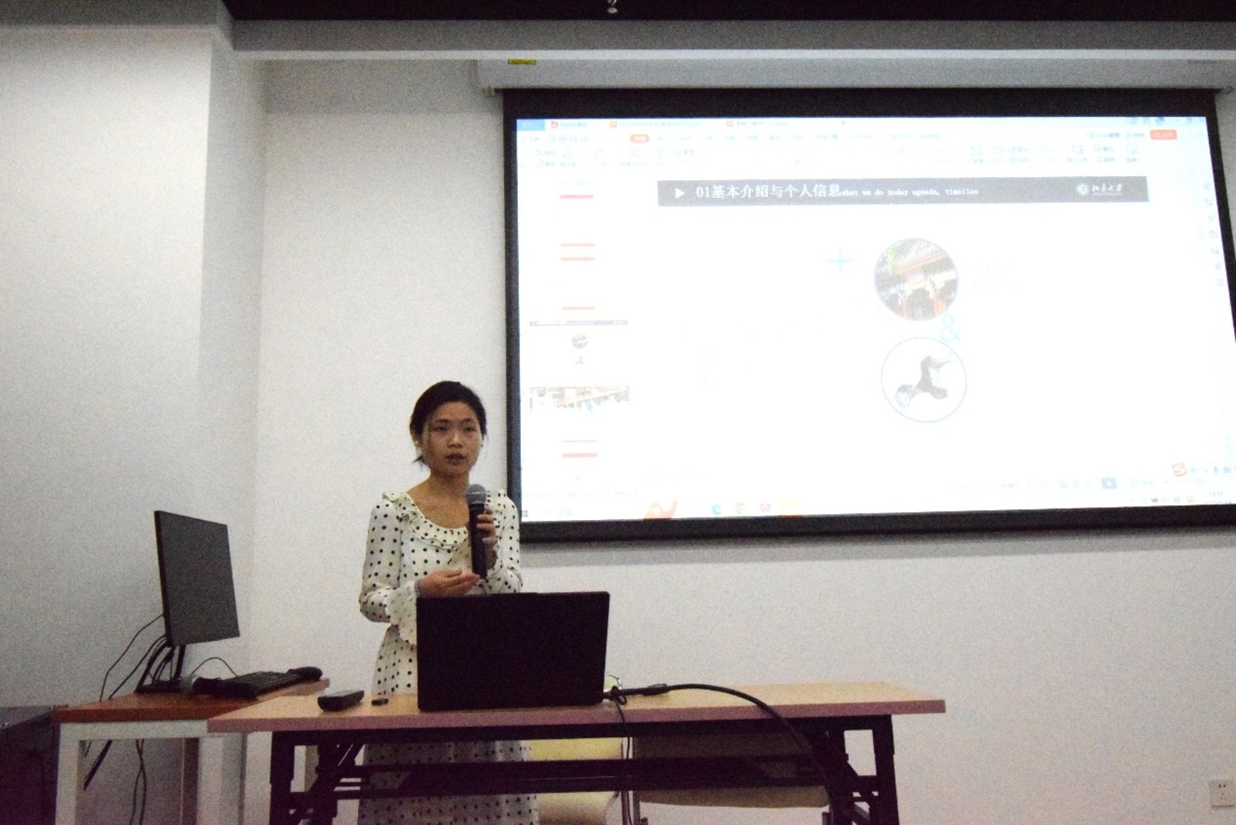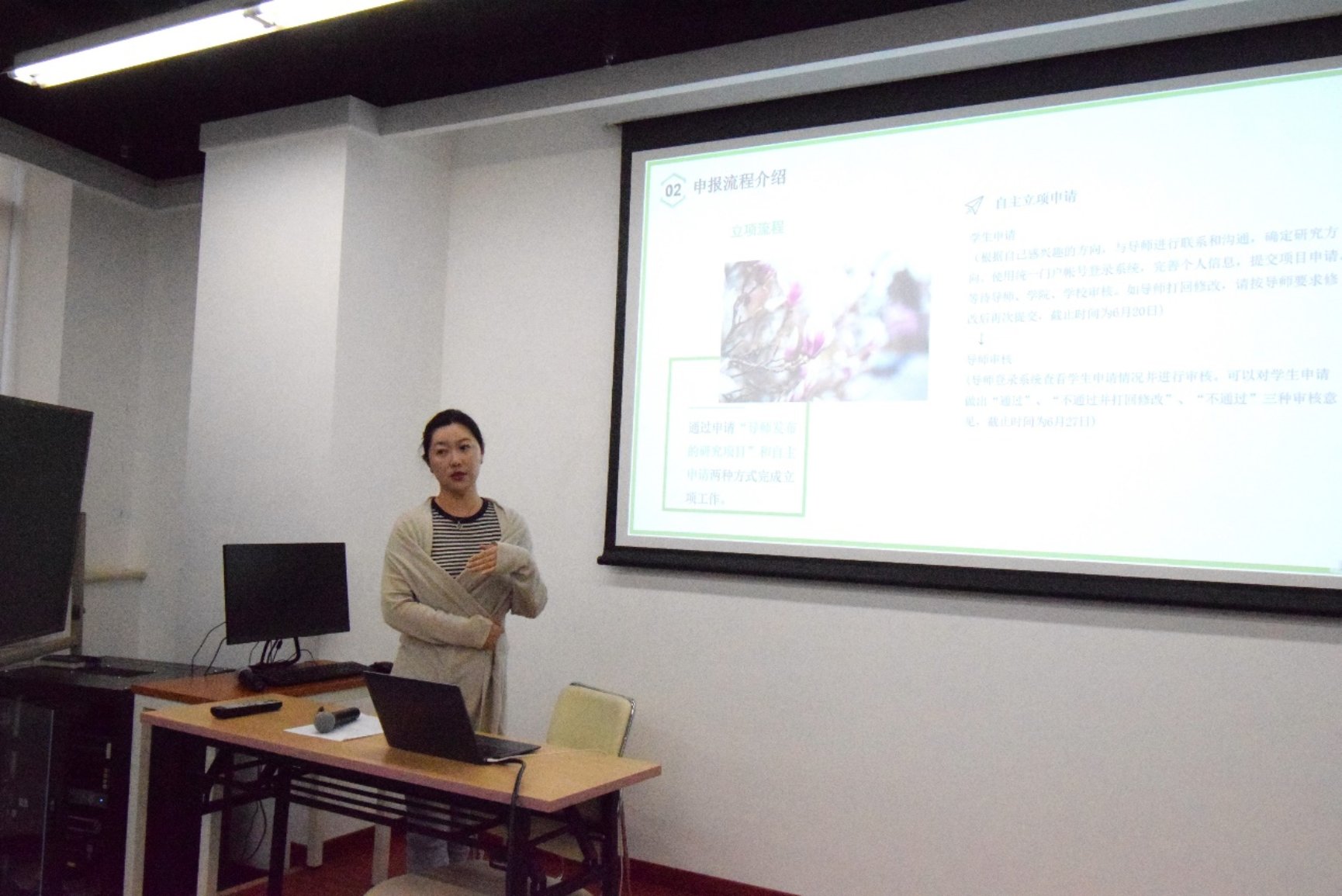 最后,政府管理学院本科生教务曲晓妍老师向同学们详细介绍了本科生科研的基本情况、申报流程、中期审核和结题答辩的内容。
