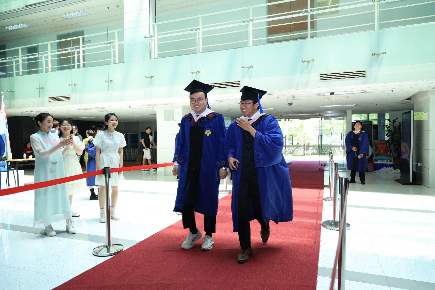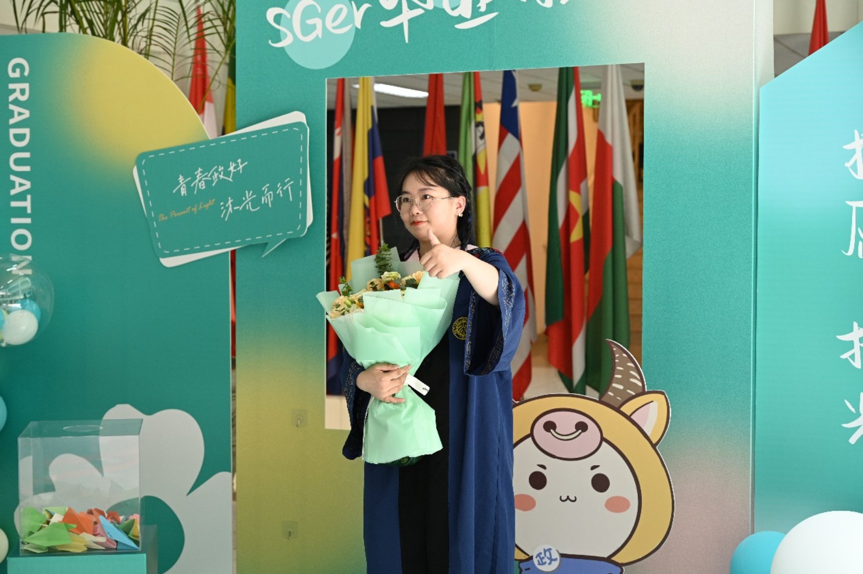 欢送会前,学院阳光大厅的地面被寓意希望与期盼的红毯覆盖,红毯两侧设置了毕业写真展及毕业季主题置景,一张张照片记录着同学们在政管留下的美好瞬间和独家记忆。阳光厅欢声不断,毕业生们纷纷与老师、同窗、亲友拍照留念,满心欢喜,热泪盈眶。