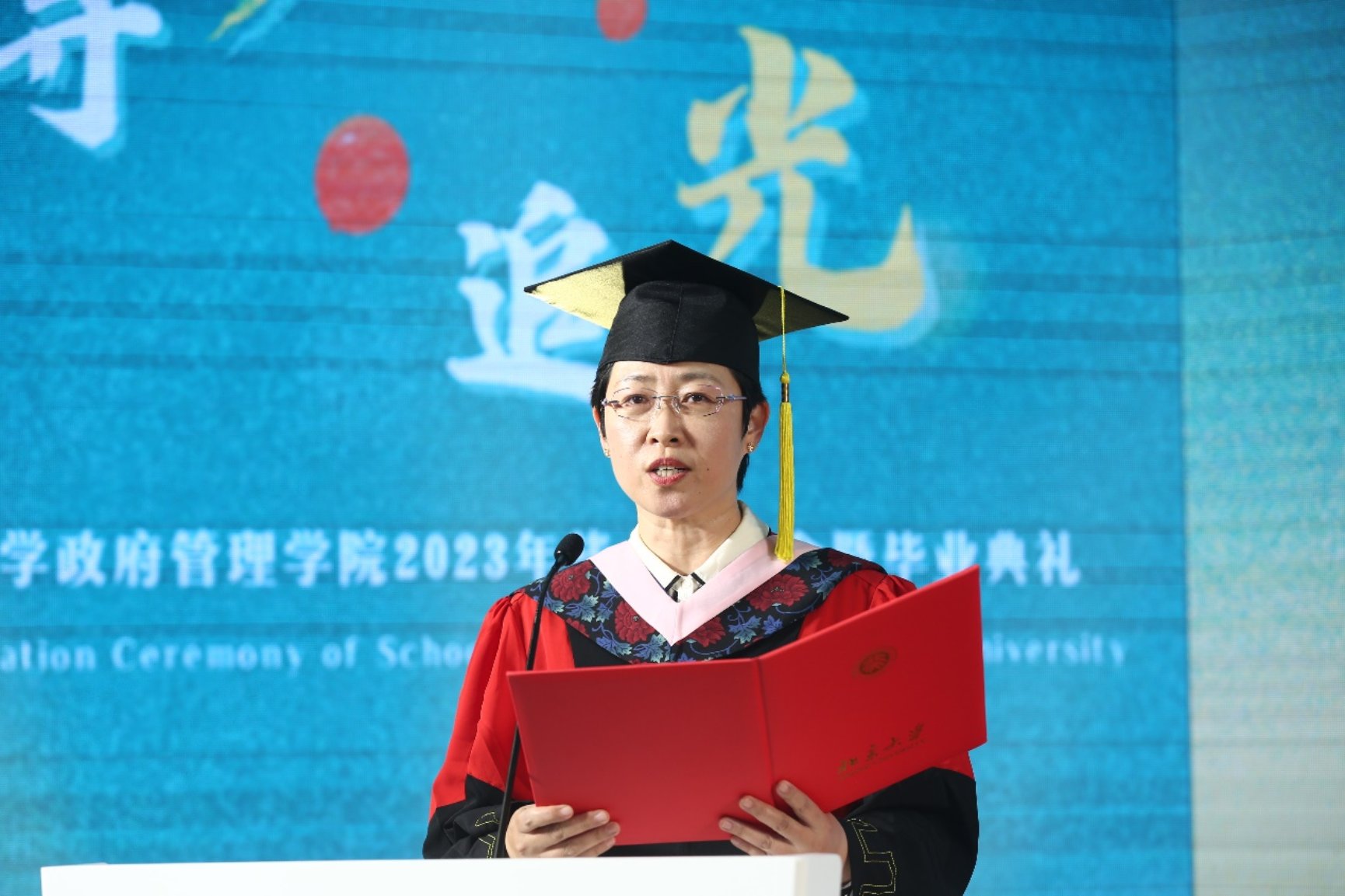 典礼伊始,政府管理学院政治学与行政管理类学位分会主席句华教授宣读了《关于为2023届毕业生授予学位的决定》。2023年,全院共计384名本科生、硕士研究生、博士研究生获得学位。