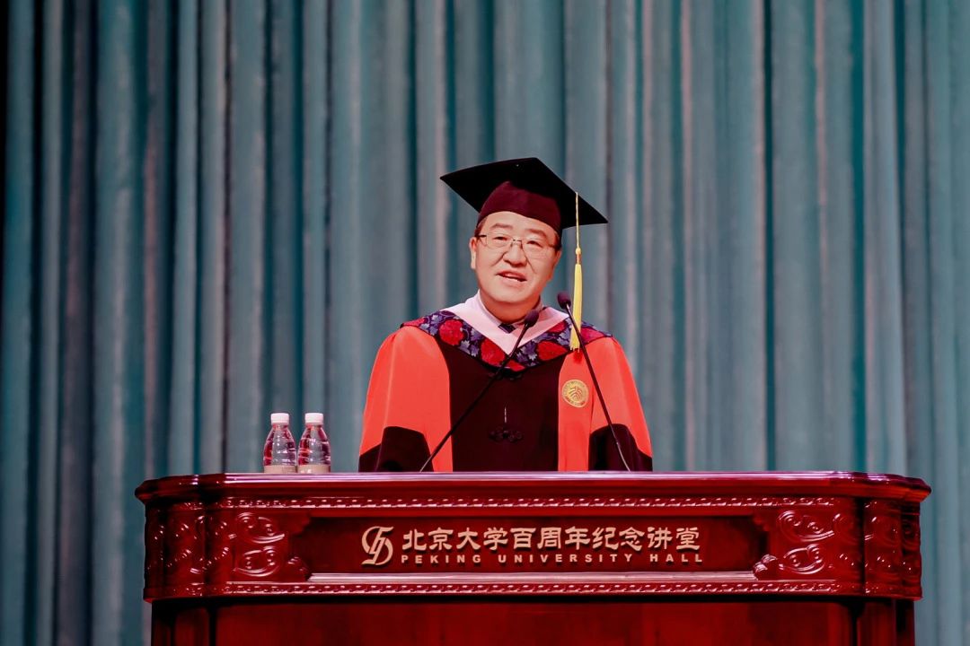 北大的浸染,学院的淬炼,使命在肩的箴言,相信诸位已经耳熟能详,而我想说:真正的担当,有时是破晓时率先迎光,有时是长夜里最后掌灯。“逆境成长法则”启示我们,大错不犯,微善常为,让平凡的坚持照亮不凡的人生。祝愿各位对未来保有信心,更要坚守立身处世的韧性、耐心和定力,不仅能在冲锋的时候“领跑”,还能在坚守的时候“殿后”。