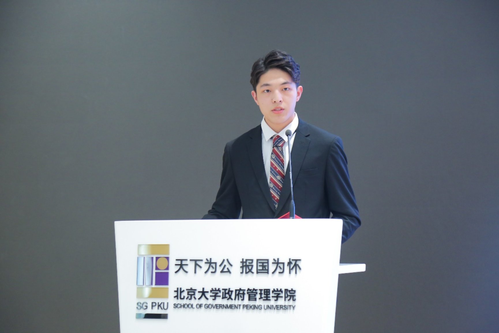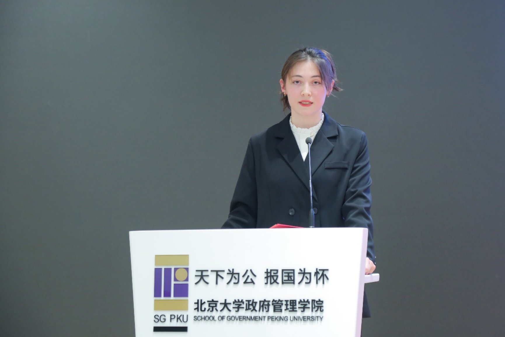 政府管理学院学生会主席、2019级本科生艾迪娜·米尔艾克拜尔向与会师生介绍青年政治人论坛发展情况。她谈到,2014年习近平总书记在考察北京大学时勉励广大青年做到勤学、修德、明辨、笃实。受此启发,北京大学政府管理学院率先发起成立“青年政治人论坛”,并将“青年理想与时代责任”作为核心主题,旨在培养青年政治人“天下为公,报国为怀”的情怀、坚定青年政治人“下真功夫,求真学问”的信念。未来,青年政治人论坛将不忘初心,将活动经验传承好、发扬好,助力广大青年政治人在实现中国式现代化的伟大征程中砥砺成长。