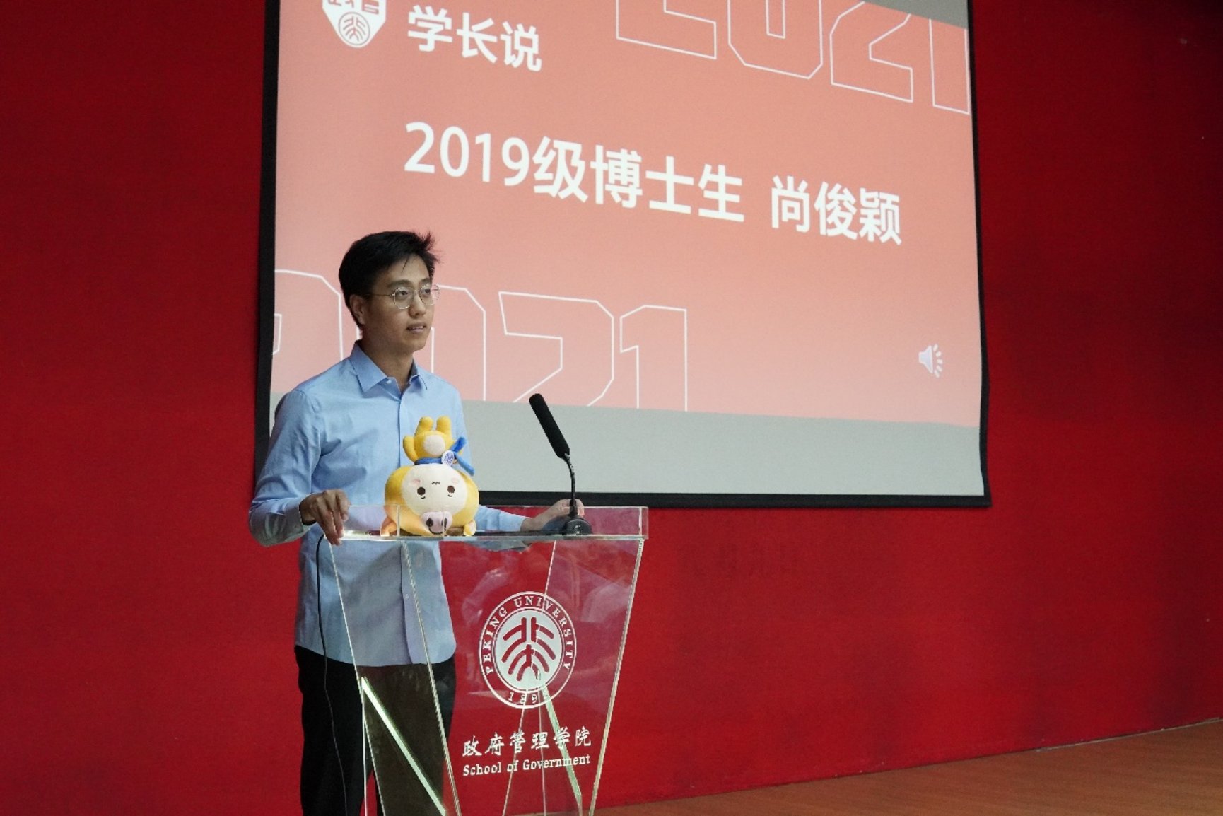我是北京大学政府管理学院2019级博士研究生尚俊颖。在开学典礼这样一个隆重而富有纪念意义的场合,很荣幸能够代表学院全体在校生发言。对于各位新生们来说,今天是你们在北大、在政管开启崭新人生阶段的一天。对于我们这些“老生”来说,大家的到来,意味着我们又多了不少同窗伙伴、知交好友和学习的榜样。因此,请允许我作为在校生代表,热烈地欢迎各位来到美丽的燕园,欢迎各位加入政管大家庭!