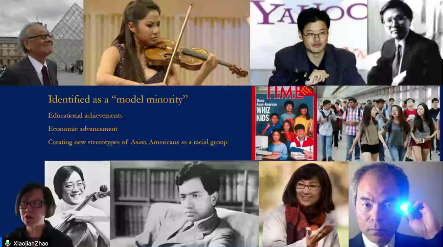 赵教授还向我们展示了许多历史材料,以对战争新娘(WarBride)和杰出亚裔的奋斗经历这两种不同视角的案例的讲述,再现了二战后亚裔群体充满酸甜苦辣的故事,及其对美国所做出的真实贡献。之后,赵教授提到:种族问题伴随着美国的成长和发展,到达一个“后种族时代(post-racial era)”,还有很长的路要走。