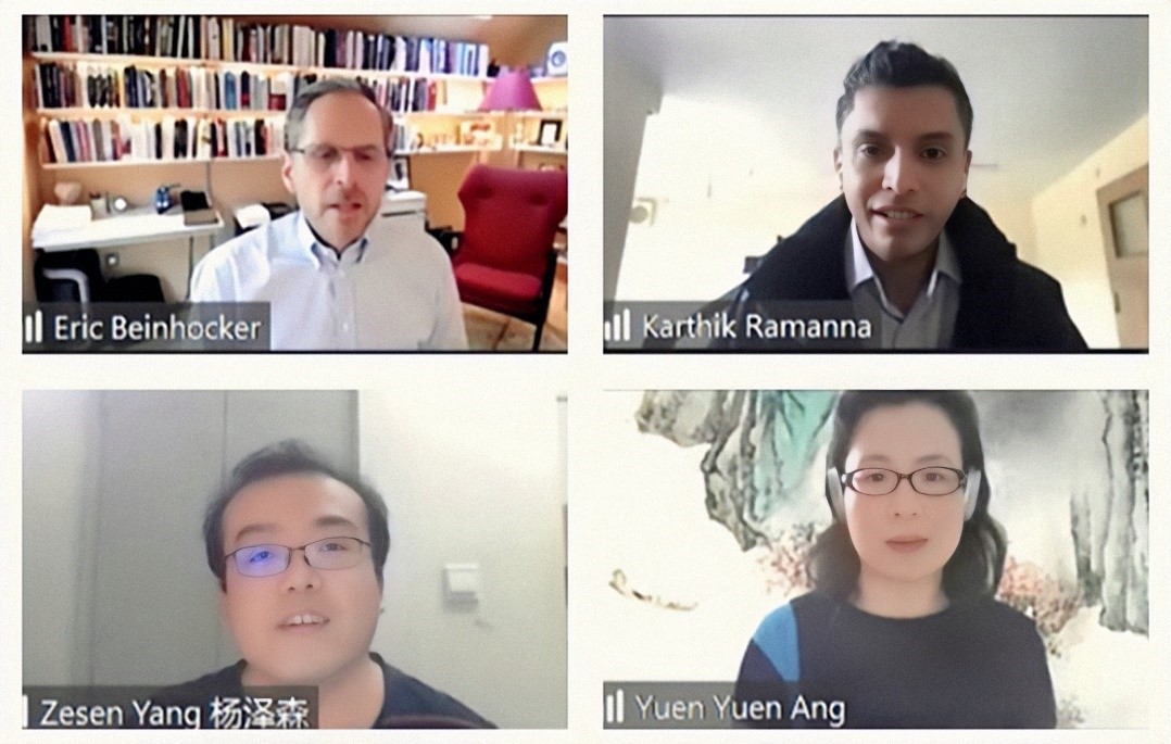 第二场研讨的主题是“疫情防控和疫后重建”。牛津大学埃里克·拜因霍克(Eric Beinhocker)教授分析了向清洁能源转型的成本与前景。牛津大学卡西克·拉曼那(KarthikRamanna)教授介绍了新型碳排放核算方式和机制的内容和应用前景。清华大学博士杨泽森分析了中国共产党的组织力和抗疫实践之间的关系,他运用量化分析方法研究发现,政党的组织力对中国和其他国家抗击新冠疫情的效能具有显著作用。美国密歇根大学洪源远(Yuen YuenAng)副教授介绍和分析了全球民众疫情认知的社会调查结果。